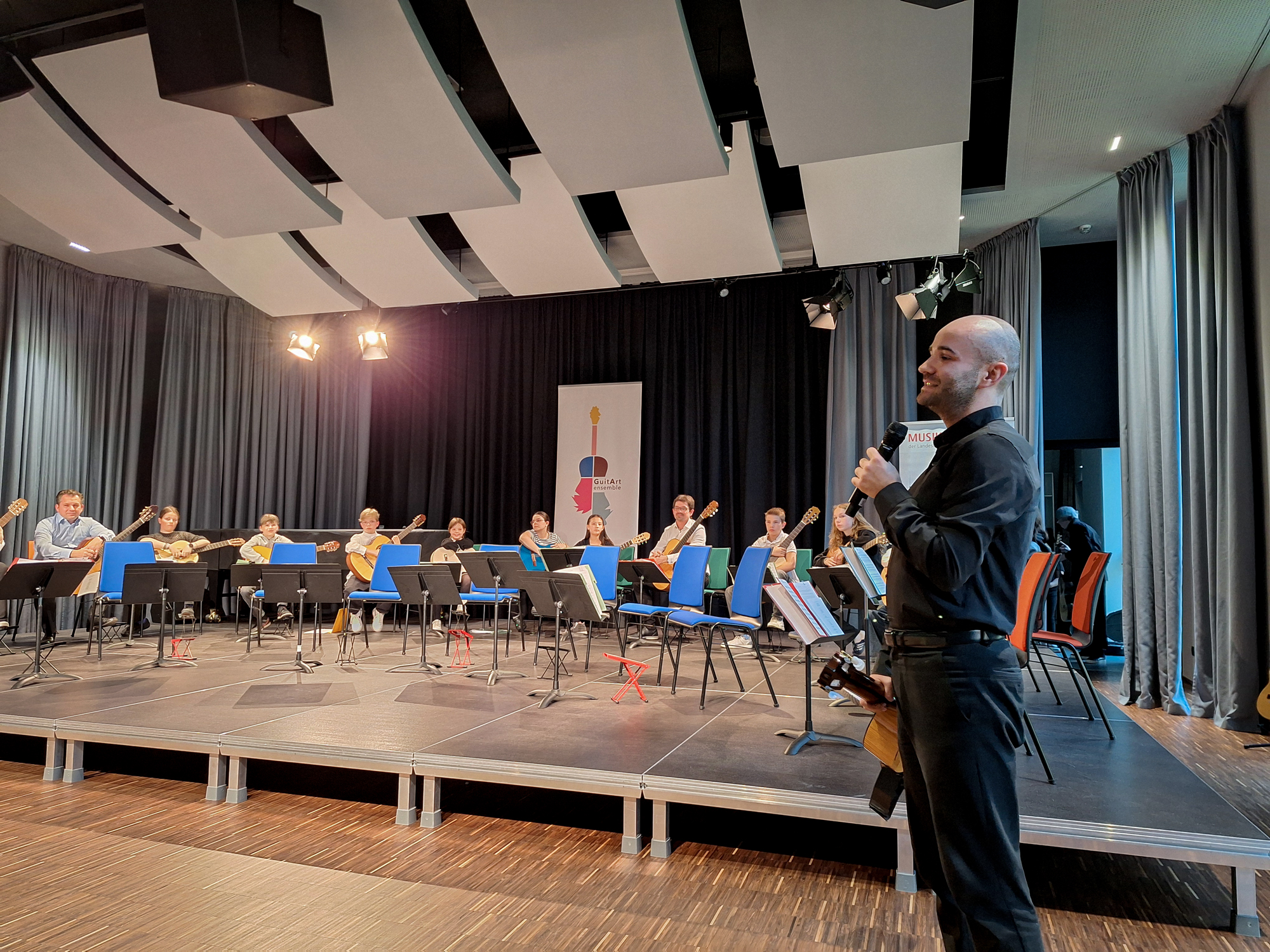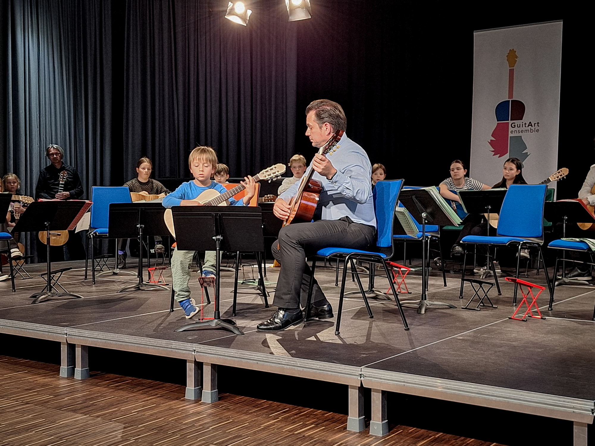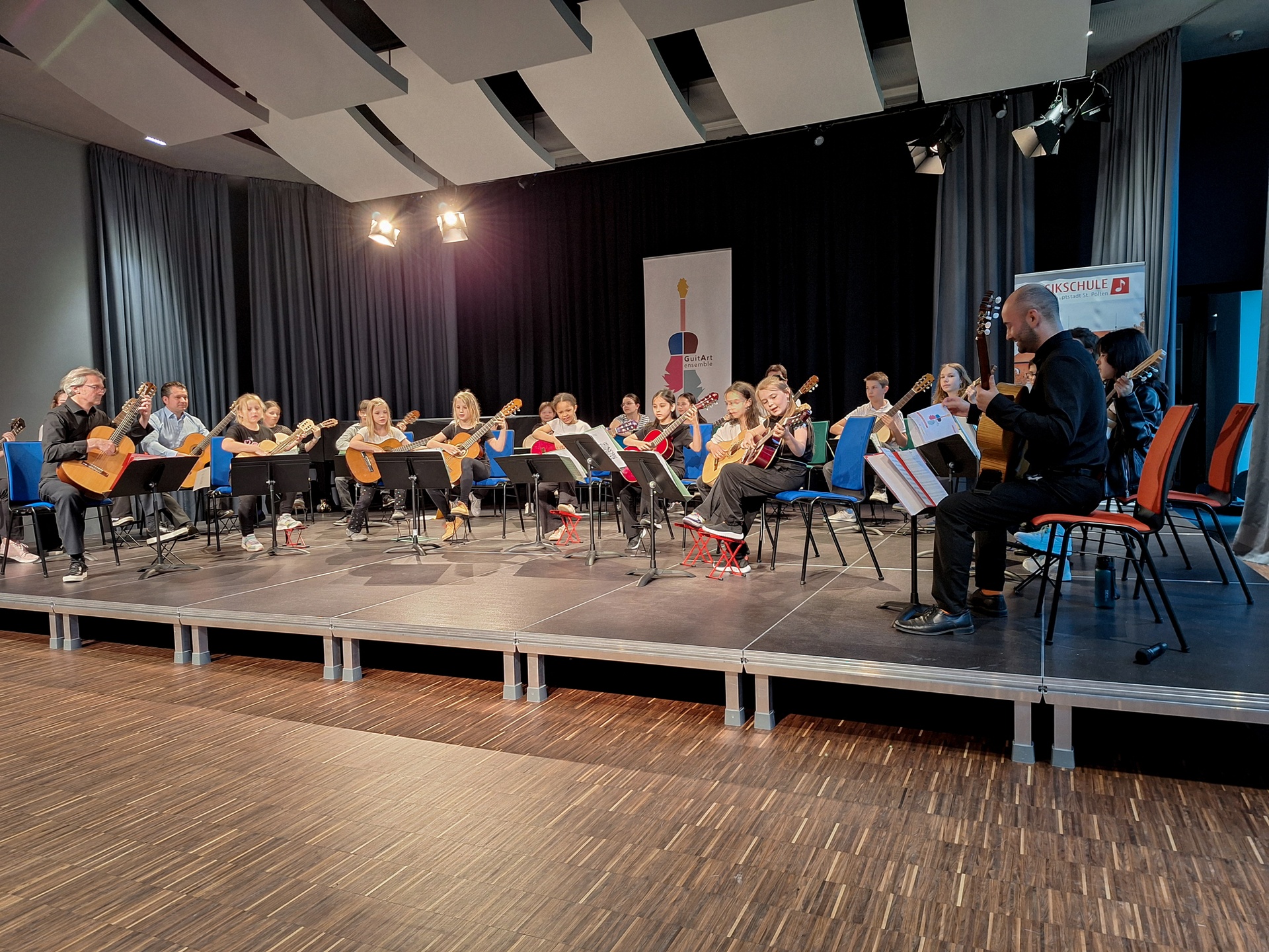 Die neue Bühne des Auditoriums bot den perfekten Rahmen für dieses musikalische Highlight und hat bewiesen, dass sie auch für größere Besetzungen bestens geeignet ist. Wir freuen uns bereits auf viele weitere Konzerte und laden talentierte Gitarristinnen und Gitarristen herzlich ein, unser Orchester zukünftig zu verstärken und Teil unserer musikalischen Gemeinschaft zu werden.